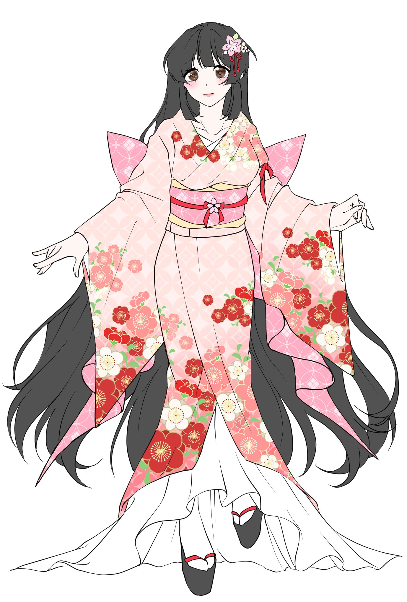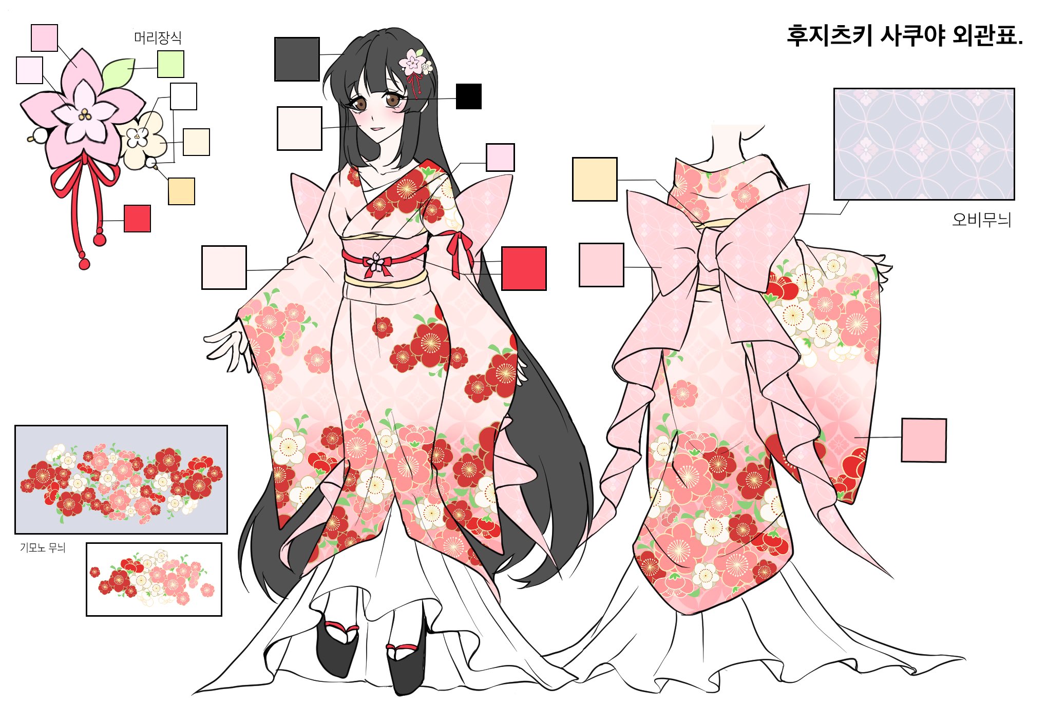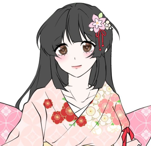 눈꼬리가 조금은 내려갔지만 웃음기가 가득한 얼굴에 흑발의 긴 생머리에 벚꽃 머리 장식을 달고 있다.